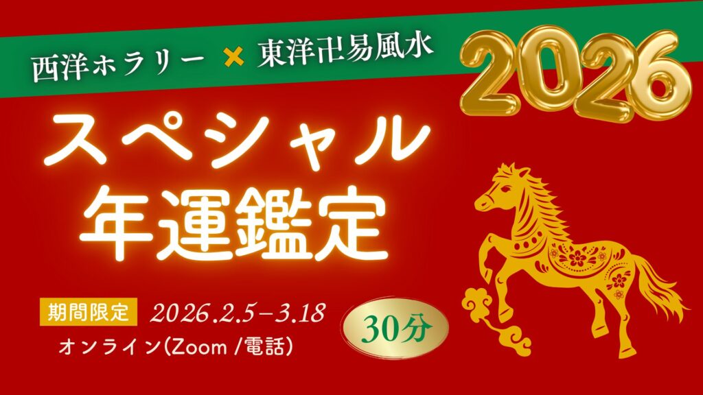 期間限定! 2026年の運勢にブーストをかけるために、西洋&東洋の技法を使う年運鑑定を、期間限定・スペシャル価格でご提供します。